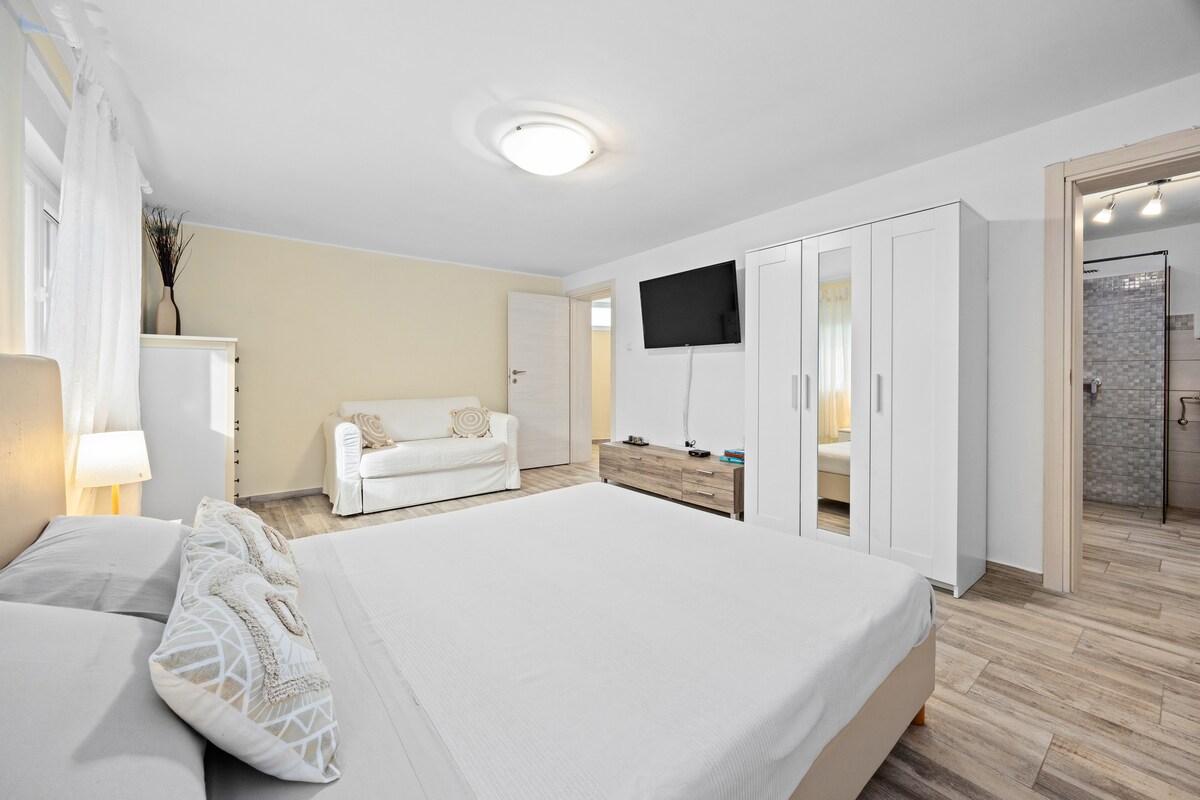 Luksuzan boravak čeka vas u ovom jedinstvenom dvoetažnom Style-Apartmanu na Jadranskom moru. I samo 800m udaljen od plaže! Odavde možete doći do Pule za samo 5 minuta, a do Medulina čak u roku od 1 minute. Svi restorani, trgovine, barovi, bankomati itd... čak i pješice. U apartmanu možete očekivati 2 aparata za kavu, 3 klima uređaja, mikrovalnu pećnicu, perilicu suđa, perilicu suđa, Netflix, do 8 ugodnih mjesta za spavanje, WiFi, kao i ekskluzivnu opremu i još mnogo toga...!