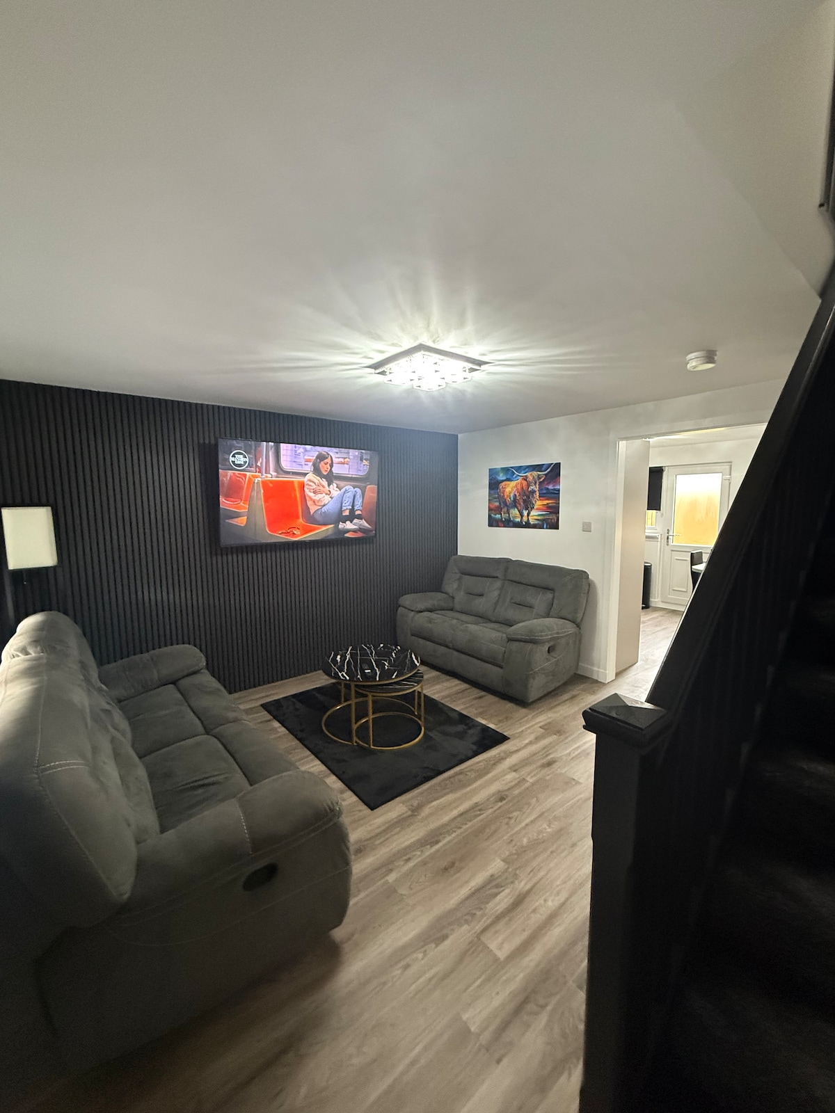 Welcome to your cozy coastal retreat in Prestwick! This modern upper flat is perfect for a relaxing stay in a quiet cul-de-sac, close to town. Two comfortable bedrooms—a double bed in one and a sofa bed for two in the other—a spacious living room, and a fully equipped kitchen, you’ll have everything you need. Just a 10-minute walk to the main street, a 2-minute stroll to a park, and short walk to the train station. 5-minute drive to the airport. Perfect for couples, families, or solo travelers!