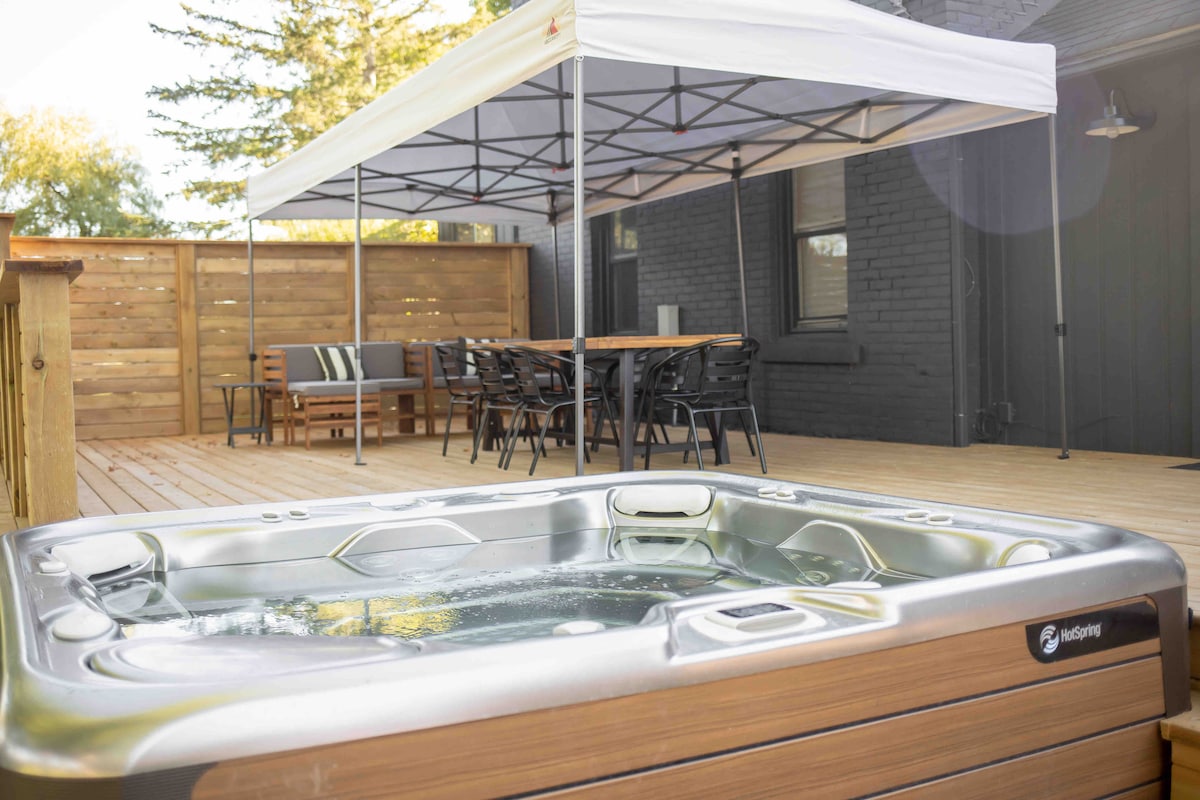 Ova kuća na plaži je dizajnirana imajući na umu opuštanje i uživanje u zajedništvu. Neka se vaše brige otopi dok se uvlačite u toplinu ove hidromasažne kade uz vodu s koje se pruža zadivljujući pogled preko gruzijskog zaljeva i uz planinsku stranu, jer oko vas pada svježi snijeg. Otvoreni konceptualni dizajn čini ovo savršeno mjesto za okupljanje s porodicom i prijateljima s terasom uz obalu i pristupom pristaništu za plivanje. 2 min do centra Meaforda, 20 minuta do Blue Mtn, 1,5 h do Tobermoryja. Planinarske staze