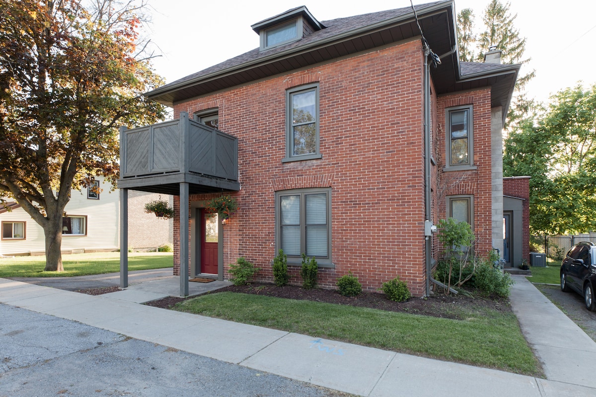 Krenite na obnovljene podove od mekog drveta koji povezuju prostorije na glavnom nivou zajedno. Detaljno preuređenje je proizvelo modernu kuhinju i široke otvorene, prozračne prostore s neutralnim dekorom. Popnite se stepenicama noću do mirnog i romantičnog potkrovlja u spavaćoj sobi. Gosti imaju privatni pristup gornja 2 sprata smještaja. Drugi sprat vas dočekuje s potpuno novom kuhinjom, velikom spavaćom sobom s bračnim krevetom, dnevnom sobom s kaučem na razvlačenje, kupatilom i trpezarijom. Uživajte u doručku (ili čaši vina) na balkonu ljeti. Idite stepenicama na treći sprat, gdje ćete pronaći privatno ogromno potkrovlje glavne spavaće sobe, zajedno s bračnim krevetom i 2 krovna prozora za gledanje u zvjezdano nebo. Mnogo prostora za vaše automobile! Po dolasku, budite uvjereni da će uvijek biti mjesta za do 3 automobila na prilazu (zajedno s besplatnim parkingom na ulici). Potpuno nova kuhinja je u potpunosti opremljena i uključuje mašinu za pranje/sušenje veša za vašu upotrebu. Veliko kupatilo s kadom. Trpezarija sa stolom za 6 osoba. Dnevni boravak s velikim Smart TV-om s kablovskom i kaučem na razvlačenje s bračnim krevetom. Stepenice vode do privatnog (s vratima) u potkrovlju glavne spavaće sobe. Udoban bračni krevet, 2 krovna prozora i mnogo knjiga Kuća se nalazi u prijateljskoj ulici u gradu Picton, okrug Prince Edward. Kupio ga je iz hira par koji se zaljubio u to područje. Prošećite do finih restorana i prodavnica. Pokrajinski park Sandbanks udaljen je 15 minuta vožnje. Budući da se kuća nalazi na gornja 2 sprata, važno je da se vi i vaši gosti (uključujući djecu) slažete sa stepenicama. Nemamo kapije za bebe. Pristup smještaju je bez ključa putem pametne brave.
