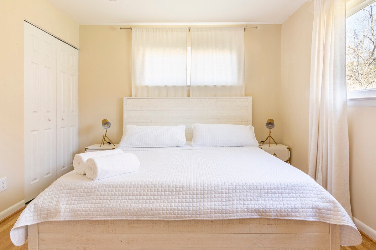 Svidjet će vam se osamljeni vrt, u blizini šume s jelenima i divljim životinjama, osunčana kuhinja s krovnim prozorima, vrtna soba i velika terasa od cigle. Uživajte u 10-minutnoj šetnji do Amazon Fresh, Starbucksa i Einsteinovih peciva. Jedna milja do metroa Bethesda; 1,5 milja do nih i Washington DC. Samo 1,8 milja do poznatih restorana u Bethesdi i Kensingtonu. Wi-Fi, veliki radni prostori. Stoljećima staro drveće. Samostalni dolazak. Dovoljno mjesta za parkiranje na ulici. Dozvoljeni su samo psi vodiči/ naplaćuju se po cijeni od 10 $ dnevno.