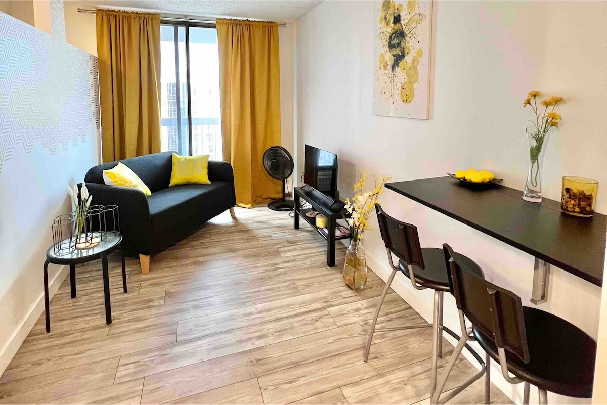 Dobro došli u naš elegantno dizajnirani jednosobni stan u centru grada s pogledom na gradske vizure i pogledom na toranj Calgary. Nalazi se u srcu Beltlinea. Pješačka udaljenost do svega, kao što su restorani, barovi, trgovine, trgovine namirnicama i sve popularne/trendovske avenije. 5 minuta vožnje do rijeke, Stampedea i Saddledomea. Imajte na umu da se vrata zgrade zaključavaju u 22:00 h. Ako rezervišete, morat ćete preuzeti ključ/privjesak na drugoj lokaciji. *BAZEN je zatvoren tokom zime.