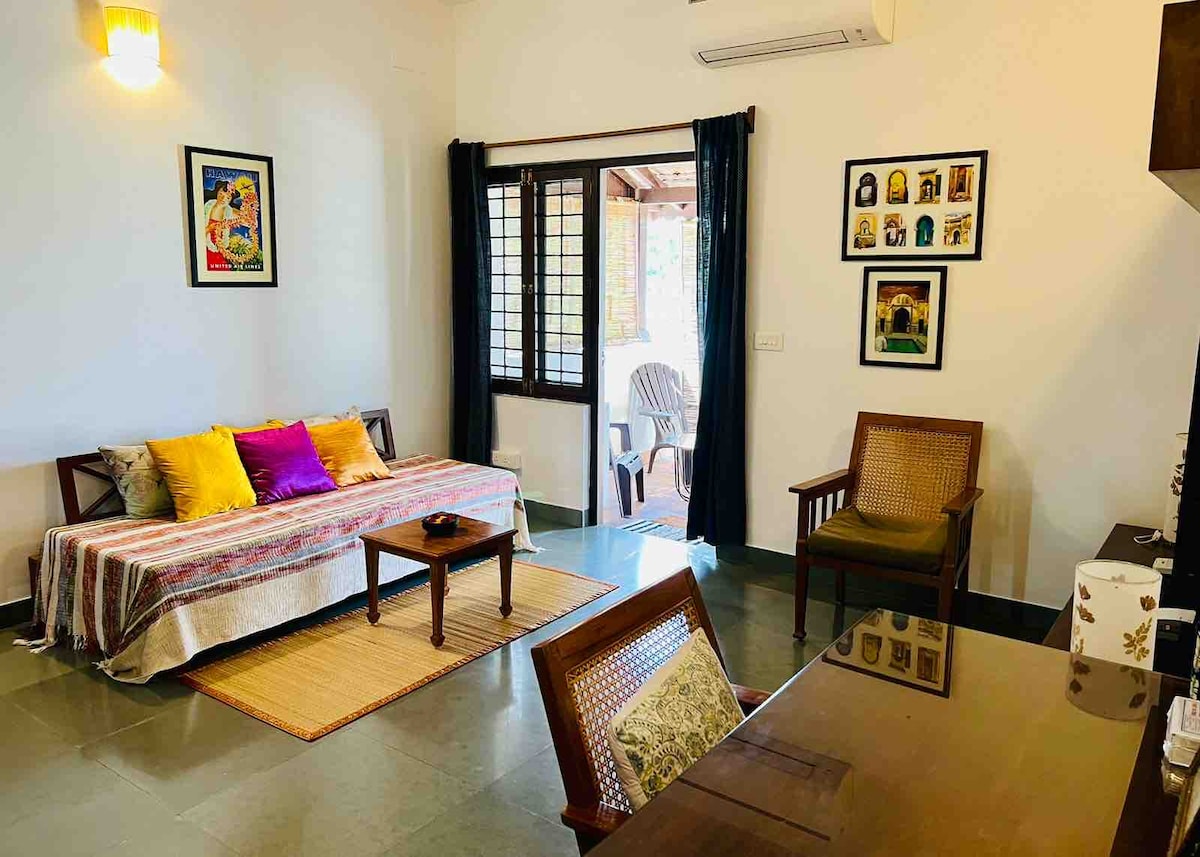 5 minuta hoda do morskog povjetarca, zalazaka sunca i talasa. Boravite u srcu najživahnije četvrti Pondicherryja, okruženi kafićima, pubovima, noćnim životom i obalnim šarmom. ⚠️Prikazana cijena je samo za dva gosta ⚠️1. sprat, bez lifta ⚠️Parking je moguć samo na ulici Prikladno za parove Klimatizovana spavaća soba s kuhinjom za kuhanje. Dizajnirano za putnike koji žele udobnost i lokaciju bez kompromisa. Brzi Wi-Fi Besplatni Netflix i OTT Prolaz na balkonu