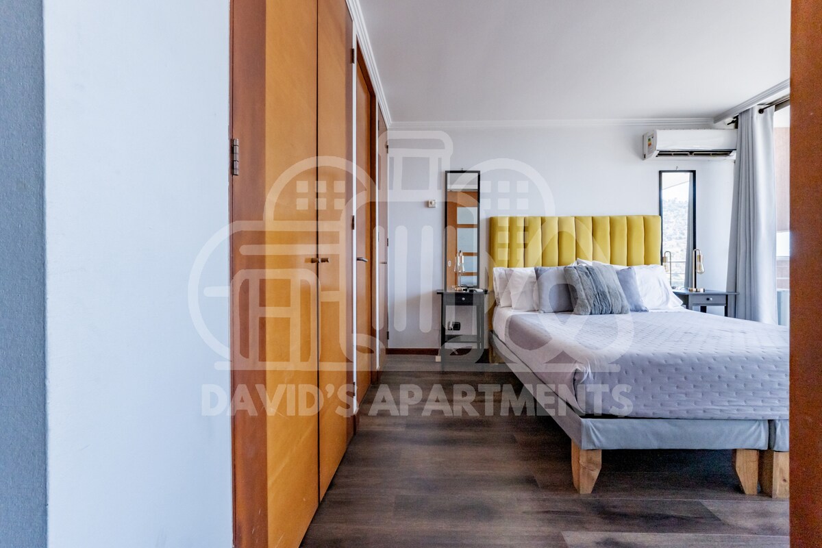 Dvosoban stan s pogledom na Cerro San Cristóbal. Koraci do stanice podzemne željeznice Salvador i centra Santiago. Može se prošetati do najboljih područja restorana i pabova. Četiri stanice od trgovačkog centra Costanera Center i 20 minuta od međunarodnog aerodroma (autoputem). Potpuno opremljen, s klima uređajem i parkingom unutar zgrade. Idealno za istraživanje ili obavljanje papirologije u Santiagu.