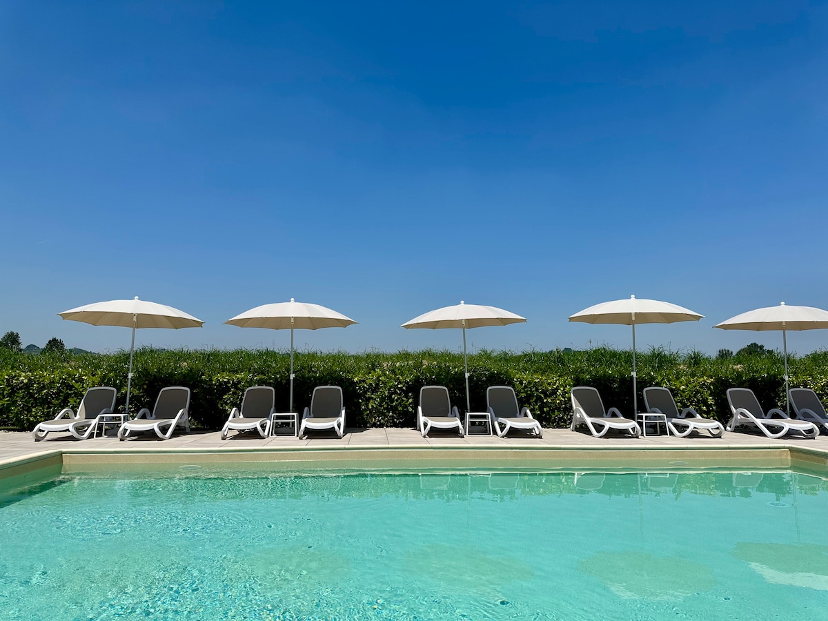 Elegantna seoska kuća smještena u brdima Monferrata. Nezavisni smještaj za goste, napravljen od staje, opremljen je dnevnim boravkom s kuhinjom, udobnim kupatilom i velikom i svijetlom sobom s bračnim krevetom i četvrtastim krevetom idealnim za par, porodicu ili grupu prijatelja, do 3/4 osobe. Iz stana možete uživati u očaravajućem panoramskom pogledu, kao i s velike terase na kojoj poslužujemo bogat doručak. Dostupni su i vanjski prostori za opuštanje.