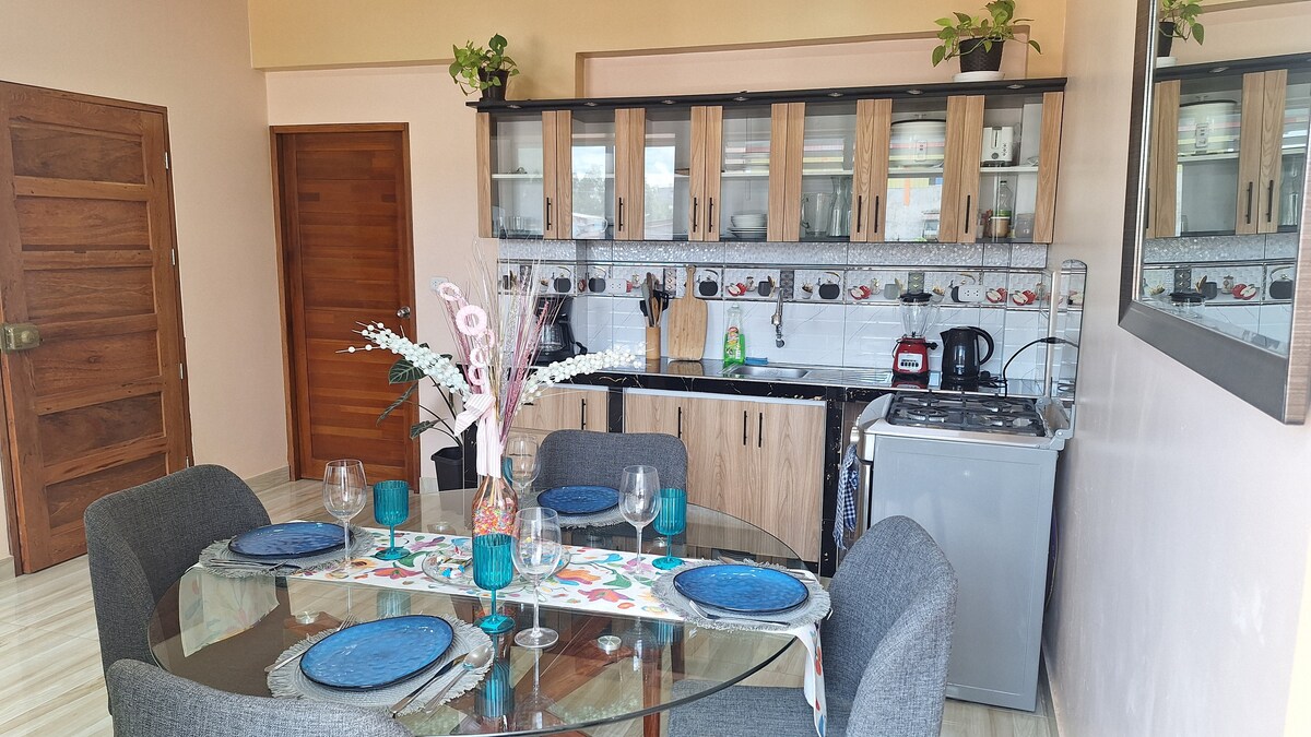 Apartamento totalmente privado con Terraza privada y entrada independiente, con diseños modernos, cuenta con 2 camas de plaza y media, baño privado , salón con TV SMART, comedor cocina, y terraza Chill de 30m2. Ventilador de techo, WIFI, Aire acondicionado en salón y habitación. Vistas panorámicas. Apartamento Climatizado . Te sentirás como en casa. Incluye Lavadora.