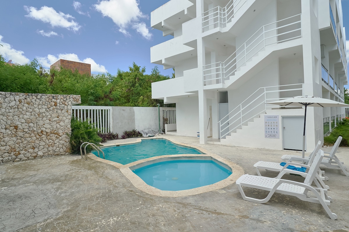 Prekrasan studio apartman smješten u terasi zgrade, 5 metara od pisoa (BEZ LIFTA), idealan za one koji žele uživati u karipskoj klimi. 3 prekrasna bazena i dječji vodeni park, samo 8 minuta od poznatog "Coco Bongo" u centru grada, okružen mogućnostima za uživanje i danju i noću, pored Delphinaria, Plaza San Juan sa supermarketom, restoranima, ljekarnama i bankama i masažom. Wi-Fi, voda za kupce, besplatan parking, 24-satno obezbjeđenje i 20 minuta od aerodroma.