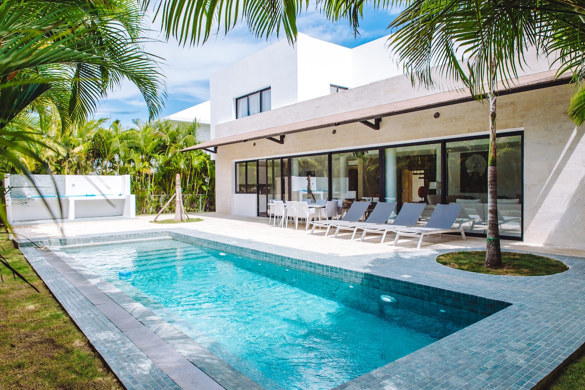 Dobro došli u svoje luksuzno utočište u Punta Cani! Ova vila za 6 osoba, smještena u ekskluzivnom privatnom stambenom objektu s 24-satnim nadzorom, idealna je za nezaboravan boravak. Uživajte u jacuzziju za 8 osoba, bilijarskom stolu i potpuno opremljenoj kuhinji. Samo 12 minuta od aerodroma Punta Cana, 10 minuta od tržnih centara, Coco Bongo, Blue Mall i Downtown Punta Cana i 15-20 minuta od najboljih plaža. Wi-Fi, klima uređaj i privatni parking su uključeni.