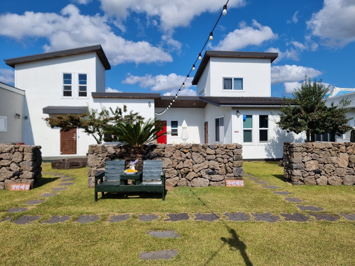 Ovo je smještaj za parove koji se nalaze u mirnom selu istočno od Jejua (2 odrasle osobe). Nema dodatnih ljudi. Seongsan Ilchulbong Peak Seopjikoji 15 minuta u Udu 15 minuta. Cvjetovi trešnje u proljeće Parovi imaju privatnu baštu u kojoj možete vidjeti kameliju zimi. Postoji mramorno srce za dvije osobe i lijepa prostorija za kupanje na otvorenom s nekoliko umivaonika. Možete se okupati dok gledate kameni zid i pogled na bambus ■Postoje dvije kuće i nasumično su dodijeljene. Svaki boravak ima projektor s gredama i Marshallov zvučnik. Opremljen je ^ ^ Cook TV Netflix je povezan Možete gledati zemaljske filmove. (Možete ući nakon 4 sata. Rani dolazak nije moguć) Nema kuhanja i nema roštilja. Nema mašine za pranje veša.● Nikada ne mijenjajte datum. Ne, ● naš smještaj je nezgodan za prevoz Preporučujemo vam da koristite iznajmljeni automobil. Osim osobe koja je izvršila rezervaciju, Ulaz je zabranjen. Ako dođe do kršenja propisa, iselićemo se. 2 minute hoda od našeg nekretnina. Stanica za punjenje električnih vozila se nalazi na parkingu galerije Kim Young Gap. Postoji. Dolazak pomaže u samostalnom dolasku