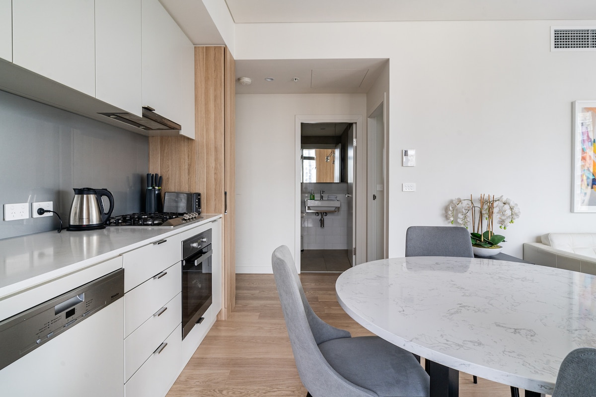 Osjetite uzbuđenje što ste samo vožnja liftom udaljena od aktivnosti u luci. Divite se zidovima ispunjenim oštrim i očaravajućim umjetninama i opustite se na udobnom kožnom kauču. Imajte noćne izlaske na balkonu i spavajte u spavaćim sobama s pogledom na grad i luku. Znamo da ćete se osjećati kao kod kuće sa super udobnim modernim svjetlom i udobnim spavaćim sobama, s ugrađenim ormarima i televizorima. Google Chrome je također dostupan na glavnom TV-u u dnevnom boravku. Siguran sam da će vam se svidjeti povratak i opuštanje nakon dana ili noći uživanja u svemu što Sydney nudi. Nećete htjeti otići!
