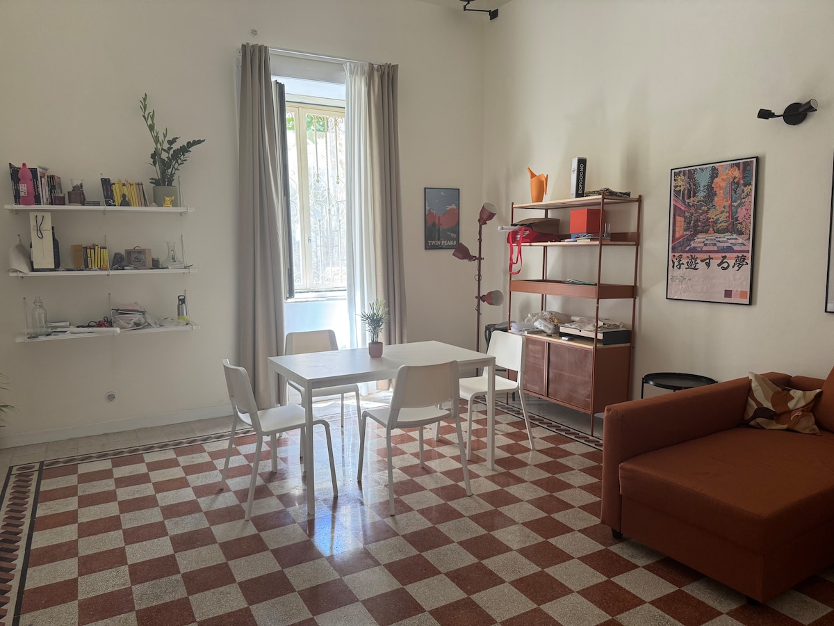 Luksuzni stan: kombinacija klasične elegancije i modernosti, upravo renoviran s JACUZZIJEM i PRIVATNIM KROVOM od 90 m2 gdje se možete diviti vulkanu Vezuv. Smještena u historijskoj zgradi na 3. spratu bez lifta u srcu starog grada, do svega možete doći pješice. Besplatan Wi-Fi, PrimeVideo, Nespresso i skladište za prtljag Zanimljiva mjesta • 2 min Duomo • 4 minute podzemne željeznice u Napulju • 6 min Metro L1 i L2 • Željeznička stanica u trajanju od 5 minuta • Luka u trajanju od 10 minuta