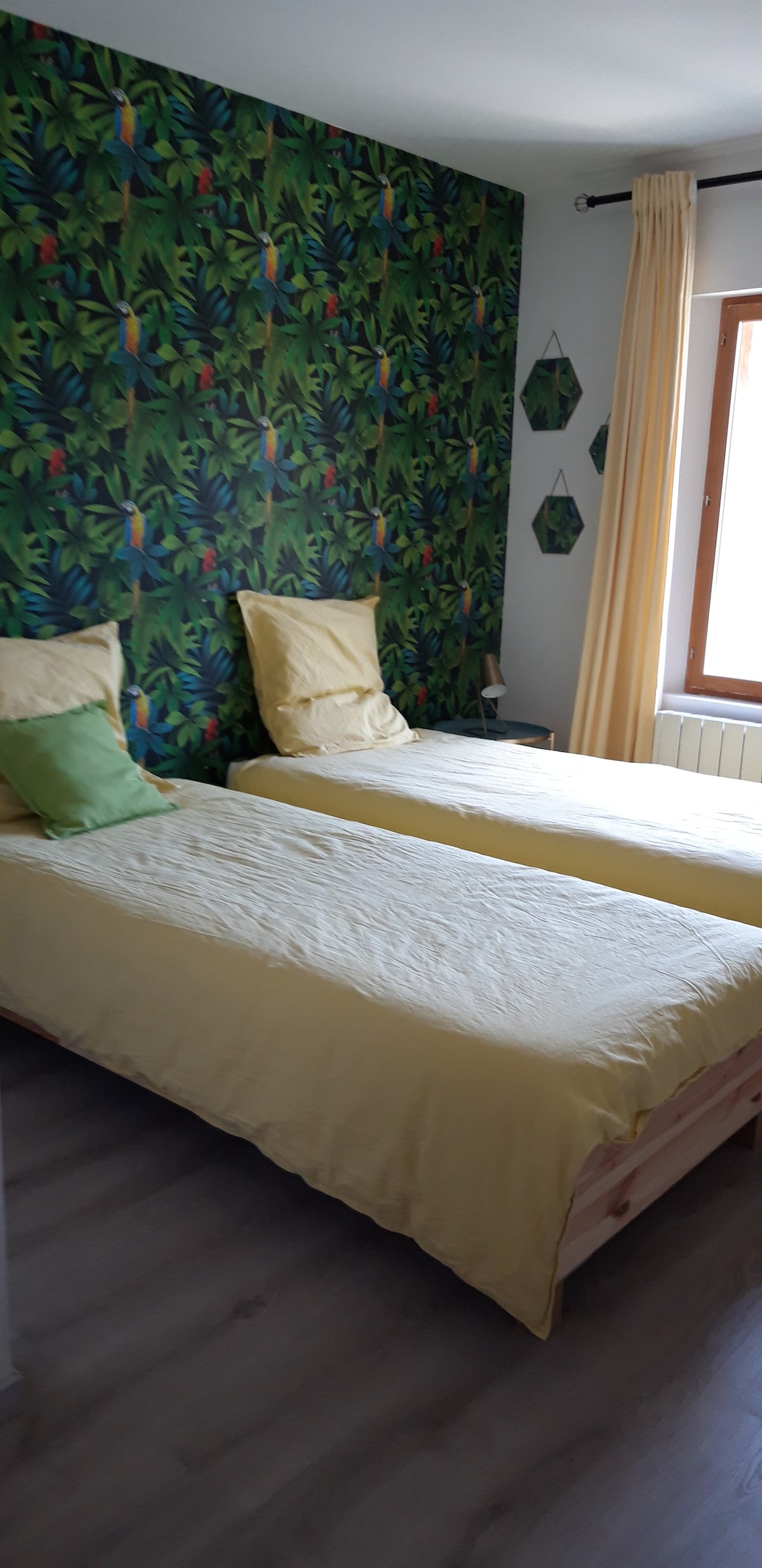 Svježe renovirane sobe s privatnim kupatilom, s modernim, udobnim i udobnim dekorom, čekaju vas na spratu Pogodno za grupe od 2 do 10 ljudi koji dolaze u posjetu našoj prekrasnoj regiji, s porodicom, prijateljima, parovima. Zajednička kuhinja i dnevni boravak namijenjeni su 5 spavaćih soba koje imamo kako biste se osjećali kao kod kuće. Dostupna je terasa u hladovini NAPOMENA:Boravišna taksa od 0,75 po noćenju po osobi koja se plaća na licu mjesta. Besplatno - 18 godina