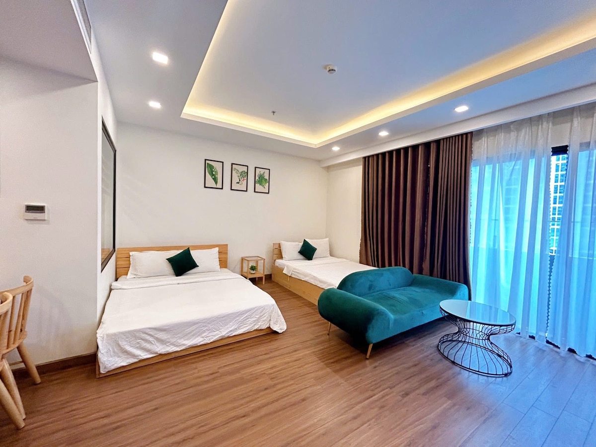 Uživajte u elegantnom doživljaju u ovom smještaju koji se nalazi u centru grada. U blizini se nalazi luksuzna čista trpezarija koja je vrlo praktična za vas. Osim toga, u stanu se nalazi i usluga preuzimanja od međunarodnog aerodroma na pijesku do stana samo 250.000 VND, a tu je i prevoz za posjetu tačkama u Quy Nhon - Phu Yen, pored toga, tu je i porodični obilazak, koji se svakodnevno podudara s početkom od 01 gosta.