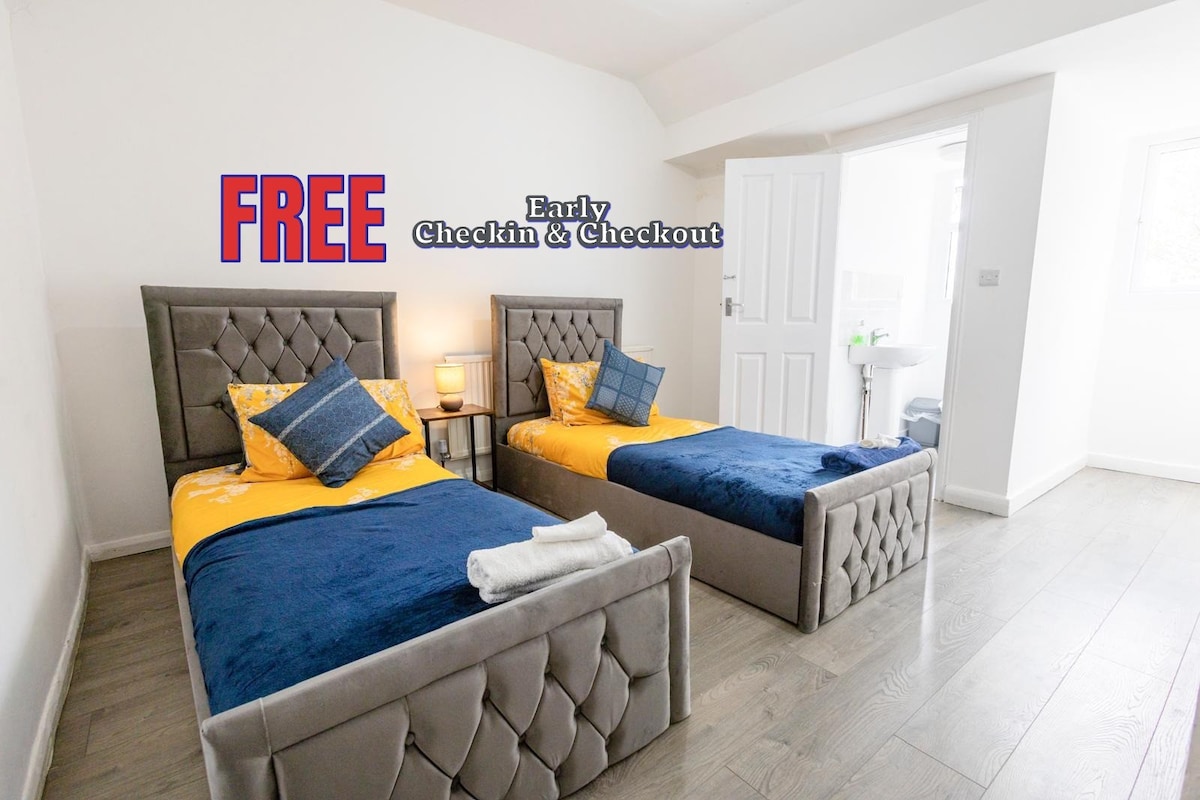 Novouređeni privatni stan na 2. spratu u Nottinghamu, povoljno smješten u blizini centra grada i tramvajske mreže. Moderna kuhinja opremljena frižiderom sa zamrzivačem, mašinom za pranje/sušenje veša, električnom rernom, mikrovalnom pećnicom, fritezom, Smart TV-om i Superbrzim širokopojasnim internetom Može spavati do 4 osobe s 1 prostranom spavaćom sobom i velikim bračnim krevetom, kao i kaučem na razvlačenje za dodatni prostor za spavanje. Postoji 1 privatno parking mjesto (FCFS), parking na ulici je obično dostupan