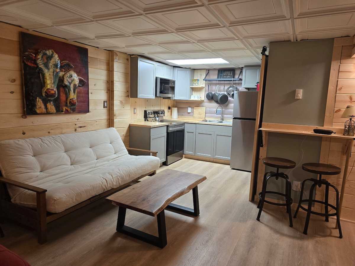 Uživajte u elegantnom doživljaju u ovom smještaju koji se nalazi u centru grada. U srcu slatkog Buckhannona i praktičnosti za sve što naš slatki grad ima za ponuditi! S ledomatom, mašinom za pranje veša i sušilicom, ne morate brinuti o otiračima za veš ili drugim prljavim rukama u ledu! 😉Bračni krevet (širok 150-179 cm) u spavaćoj sobi i kauč na razvlačenje dovoljno velik da može primiti 2 male odrasle osobe!