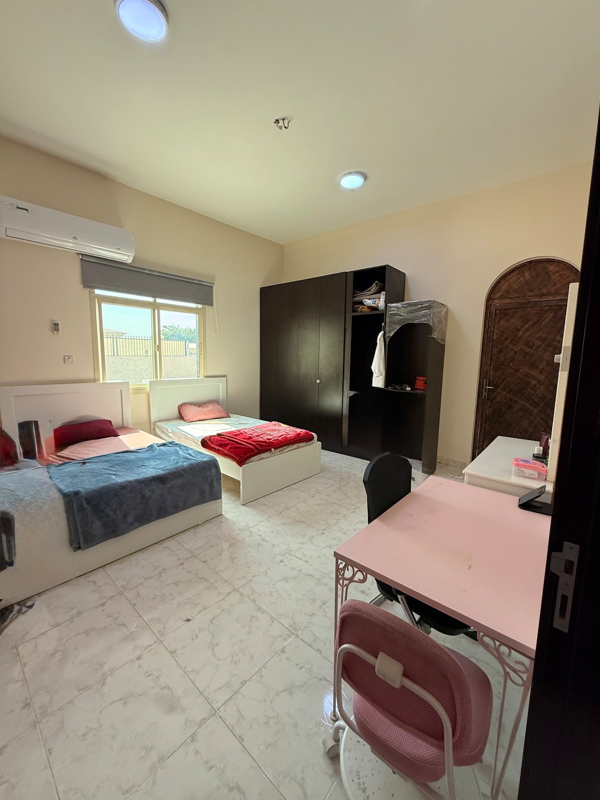 Dobro došli u našu šarmantnu kuću na farmi smještenu u srcu pustinje Ras Alkhimah ! Naše mirno i udobno utočište je savršeno mjesto za bijeg od vreve gradskog života. Potpuno opremljena kuhinja je savršena za pripremu ukusnih jela , a tu je i velika trpezarija u kojoj možete uživati u gozbi s porodicom i prijateljima. Vani ćete pronaći lijepu vanjsku garnituru za sjedenje i roštilj. Rezervišite smještaj kod nas još danas i stvorite nezaboravne uspomene u srcu sela.