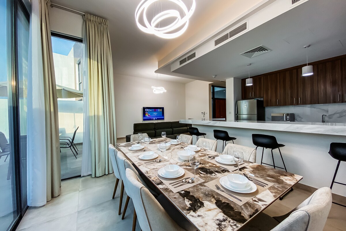 Enjoy a quiet stay in a beautiful house on a private farm surrounded by trees and green spaces with a private pool . The place is ideal for families and those seeking to relax away from the hustle and bustle of the city. The house is fully equipped (3 comfortable rooms, kitchen, outdoor seating, grill). Close to services and main roads, it’s an easy drive from dubai ,it offers a great view of nature. An authentic rural experience with luxury and comfort in the middle of the desert