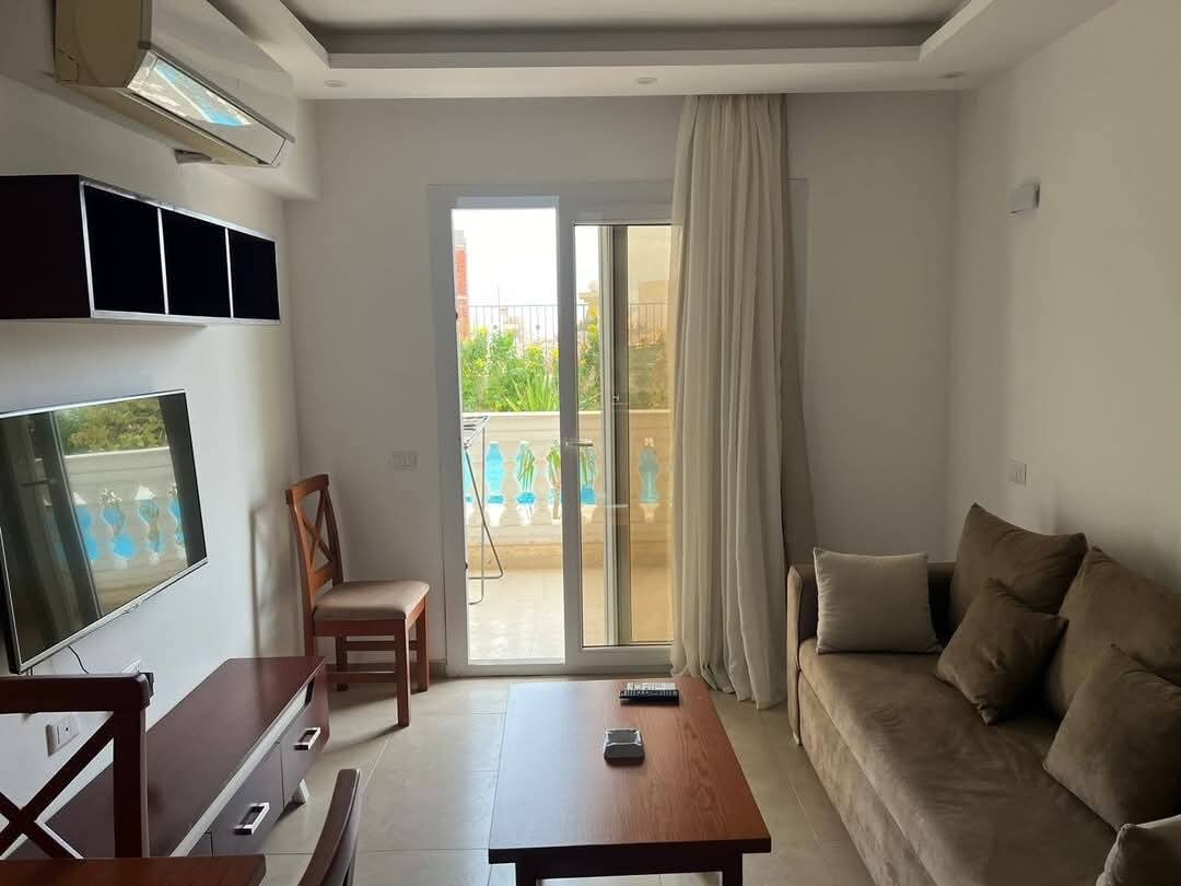 Stan se nalazi uz more, u blizini plaže s koralnim grebenom Crvenog mora. Put do aerodroma traje oko 15 minuta. U blizini je trg Soho s restoranima, trgovinama i pješačkim područjima. Stan je u prizemlju i ima direktan pristup bazenu, što je pogodno za opuštanje pored vode tokom dana. Građevinski radovi se ponekad mogu izvoditi u tom području, tako da je buka moguća tokom dana. Jutra i večeri su obično tihe i mirne.