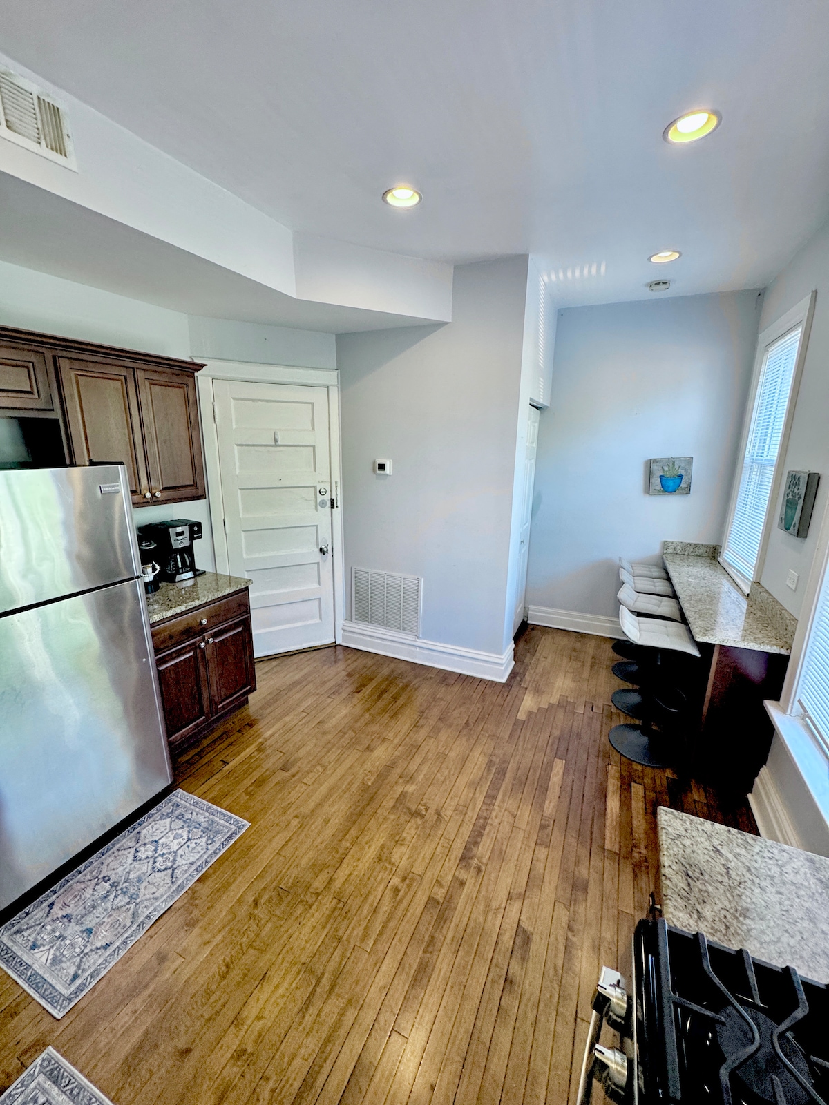 Prvi sprat restaurirane viktorijanske kuće iz 1903. godine na Lincoln Squareu. Smještaj je prostran s visokim stropovima i vrlo otvorenim osjećajem. Imat ćete cijeli 1. sprat s pristupom dvorištu sa stolicama i ognjištem. Dvije spavaće sobe i kancelarija s dodatnim opcijama za spavanje (pitajte me!). Velika trpezarija i kuhinja u kojoj se jede. Potpuno nova kuhinja i ogromna nova kupka! Mnogi kratkoročni smještaji na ovom području su na trećem spratu. Olakšajte vam život i ostanite na prvom spratu!