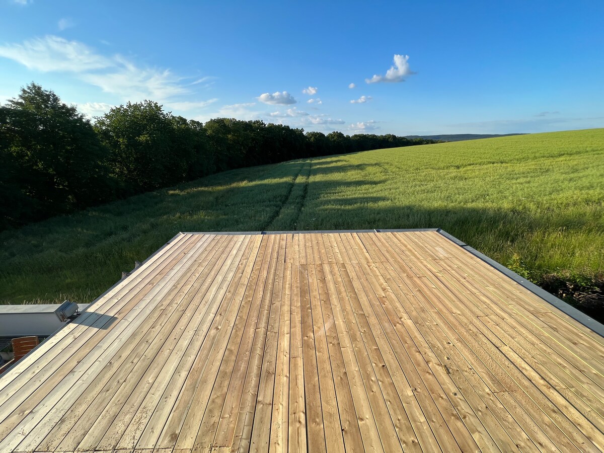 Vrhunski opremljen studio s vrtom i krovnom terasom na Zeitlbergu, samo 10 minuta biciklom do starog grada u Regensburgu - Vrt - velika krovna terasa sa širokim pogledom - Panoramska masažna kada luksuzne kategorije – Unutrašnji bazen – privremeno zatvoren - Soba - Panoramasauna - Tuš kabina s kišom -WC sa svim karakteristikama - Podno grijanje+radijator (plin) - Lonci i lampe (u boji) -Panoramina prozori sa širokim pogledom - Potpuno opremljena ugradbena kuhinja -JURA aparat ZA kafu -100 MB/s WLan Radni sto prilagođen visini