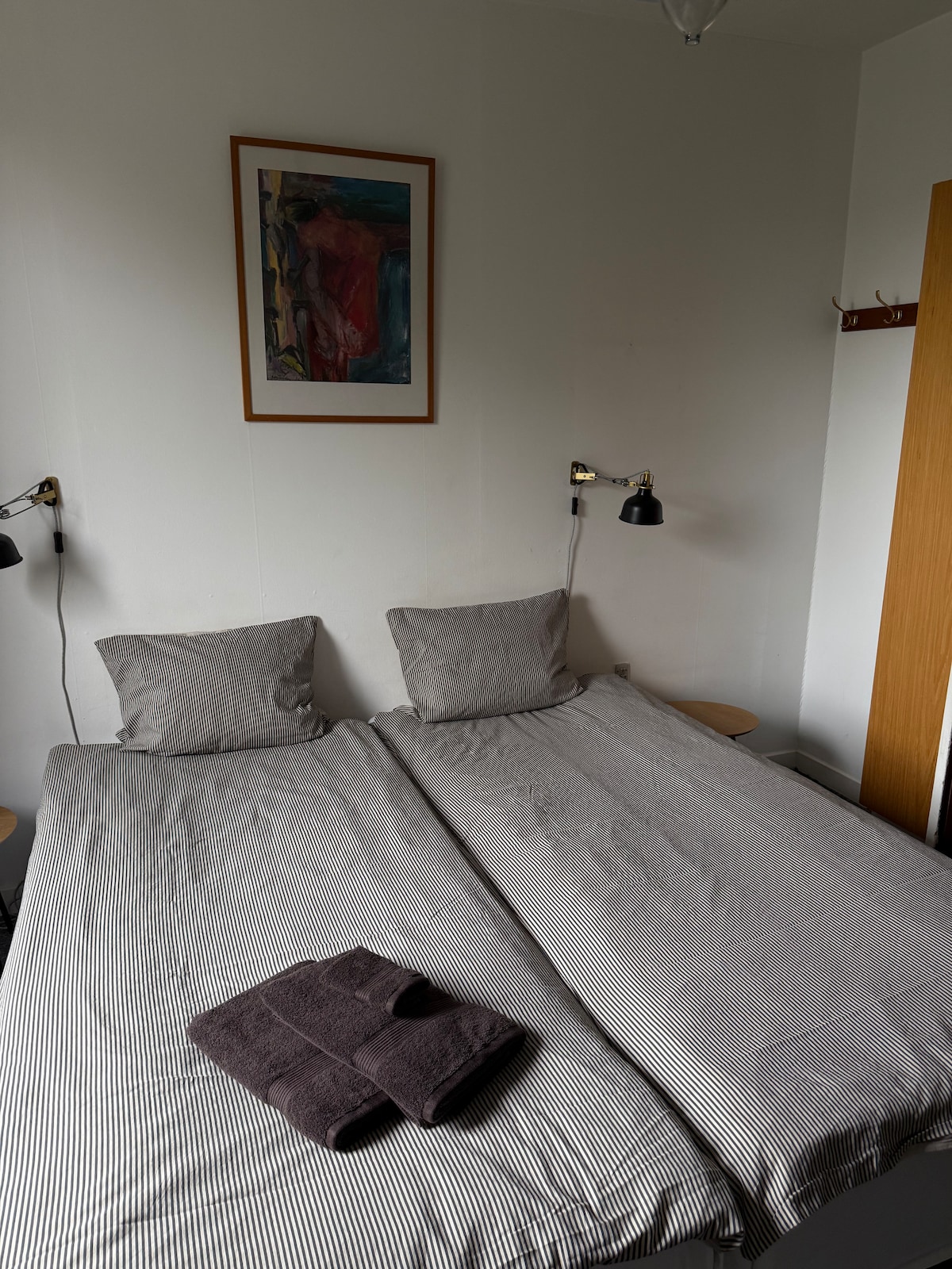Svijetla i praktična privatna soba s dva kreveta za jednu osobu (90×200 cm svaki), privatnim kupatilom s tušem i fenom za kosu te besplatnim Wi-Fi mrežom. Uživajte u svježoj posteljini, peškirima, grijanju i zvučno izolovanim prozorima za miran san. Radni stol, stalak za odjeću i utičnice u blizini kreveta pružaju dodatnu praktičnost. Soba za nepušače, s pristupom liftu na svim spratovima. Idealno za one koji traže udobnost i vrijednost u kreativnoj četvrti Nørrebro u Kopenhagenu.