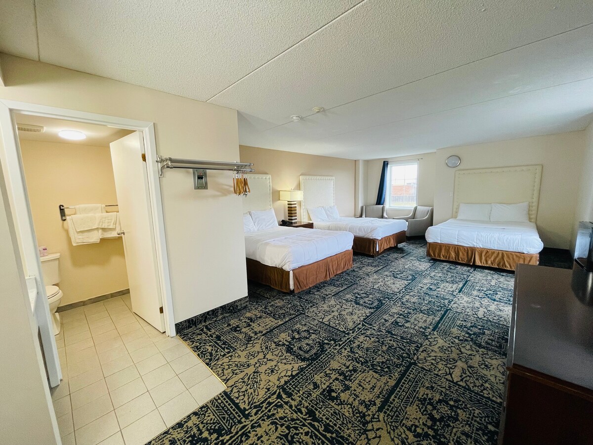 Soba s 3 bračna kreveta u smještaju Falls Lodge & Suites