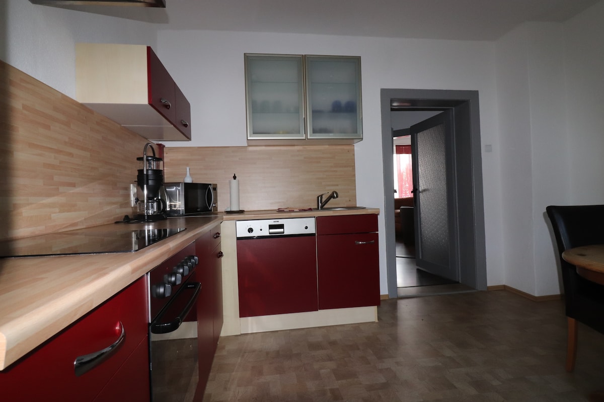 Sunčan stan na periferiji Zwickaua. Dobra veza sa B 93, B 173, A 72 i A 4. Apartman uključuje veliku kuhinju, kompletno opremljenu sa štednjakom, frižiderom, mašinom za pranje suđa, mikrovalnom pećnicom, aparatom za kafu, tosterom, kuhalom za vodu i mnoštvom posuđa. Udoban dnevni boravak opremljen je TV-om, kaučem na razvlačenje i foteljom. U spavaćoj sobi se nalaze 3 odvojena kreveta, komoda i ormar.