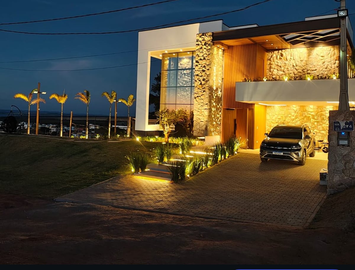 Kuća koju je dizajnirao arhitekta Décio Navarro nalazi se u ograđenoj zajednici s privatnom plažom i 24-satnim osiguranjem. Sa 650 metara korisnog područja, naša kuća je ispred brane i ima 5 apartmana, velike sobe i kompletno slobodno vrijeme: bazen, roštilj, peć za pizzu, saunu i masažnu kadu. Kondominij također ima teniski teren s noćnom rasvjetom, pristaništem, pristupnom rampom za male brodove i prekrasnim prostorima za šetnje.