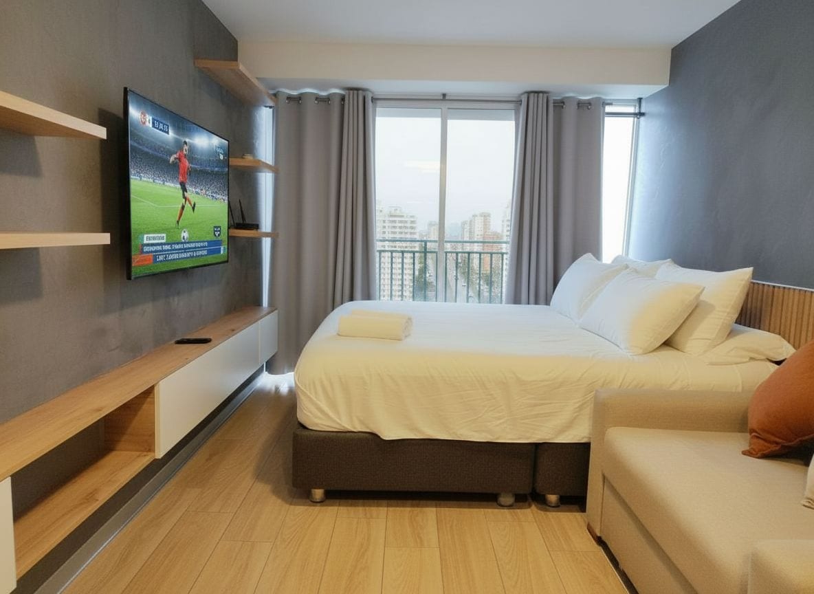 Naš smještaj od 45 m² ima 1 SPAVAĆU SOBU i 1 KUPATILO, potpuno opremljen i namješten za odmor ili poslovni boravak. 100% funkcionalan objekat, s pristupom Wi-Fi mreži, PAMETNOM TV-u, TERMI, LAVASECI i svim sadržajima potrebnim za vašu udobnost. Uključuje 1 pametni TV. Područje se nalazi na Av. Brasil i nekoliko blokova od poznate tržnice Mercado de Magdalena, s brzom vezom s Mirafloresom i San Isidroom. *Pristup je moguć samo uz ID ili PASOŠ.