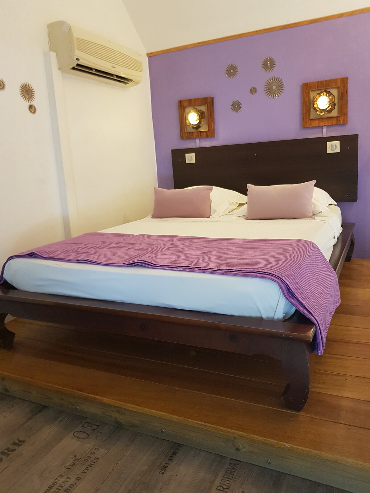 A few steps from the Lagoon, located in the residence "Le Vacoa", comfortable room on the floor in duplex, with its bathroom and toilet.<br>The room is equipped with air conditioning, a refrigerator and a flat-screen Tv.<br>You can enjoy my heated swimming pool with our charming Balinese lounge areas as well as my shared outdoor kitchen with wood-fired barbecue.<br>Ideally located on the west coast, not far from the lagoon, you can explore the beauty of Reunion from Le Vacoa.<br>