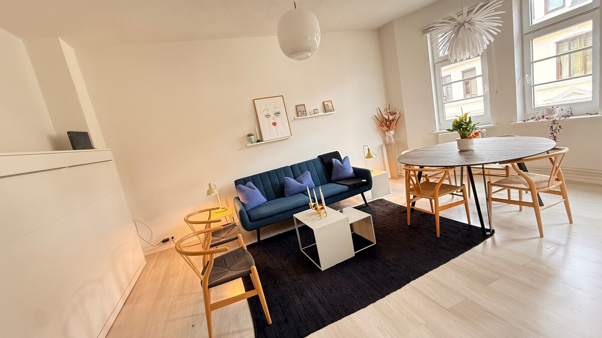 Ovo otvoreno i elegantno uređeno potkrovlje udaljeno je 1,5 km od centra. Jedinstvena konstrukcija s gredama vas poziva na opuštanje i odmor. Prostrana kuhinja idealna je za opsežnu večer kuhanja. Na pješačkoj udaljenosti nalaze se šoping objekti, pekare, restorani i velika trgovačka igraonica.