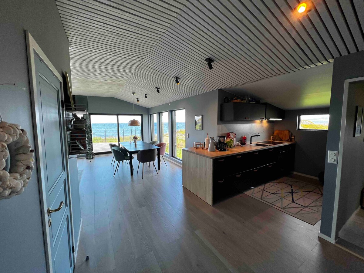 Ova moderna obalna brvnara, skriveni dragulj u blizini pekare Stokkøy i Bygdeboksena, nudi panoramski pogled na Atlantski okean. Uz jednu spavaću sobu, moderno kupatilo i otvoreni dnevni boravak koji se otvara na terasu, to je savršeno utočište za dvije ili tri osobe. Savremeni dizajn susreće sirovu prirodu, samo nekoliko minuta hoda od plaže, lokalne hrane i otočnog života u najboljem izdanju. Coworking prostor, pekara, pješčana plaža i restoran Strandbaren udaljeni su samo nekoliko minuta.