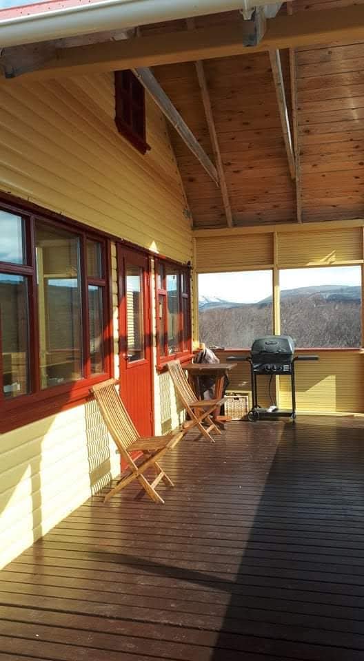Nudimo vam cijelu kuću s okolnim vrtom! Unutra ćete pronaći 2 spavaće sobe s bračnim krevetima i potkrovlje s 2 kreveta za jednu osobu, potpuno opremljenu kuhinju i kupatilo s tušem. Vani se možete opustiti na terasi, u vrtu, prošetati uz rijeku ili pješačiti u blizini brda. Za 10 minuta vožnje od brvnare možete pronaći sljedeće: - Prekrasan vodopad Hraunfoss - Bazen u Reykholtu - Prodavnice i benzinska pumpa u Húsafellu i Reykholtu Primamo životinje u našu brvnaru!