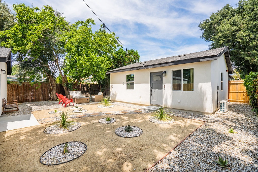 New construction 2 Bed 1 Bath Modern Hidden Gem! This Guesthouse has its own private yard, entrance & driveway. At just under 600sqft, No stone was left un-turned when Designing this space. This open concept Home features a living area with a Sleeper Sofa, 50" Roku TV, 4 chair dining table, A Remote controlled AC & Heat system. Full Kitchen with Microwave, Oven, Fridge & Washer/Dryer. Full Bathroom with Tub & Shower. 2 bedrooms, 1 with a queen bed & the other w 2 twin beds.