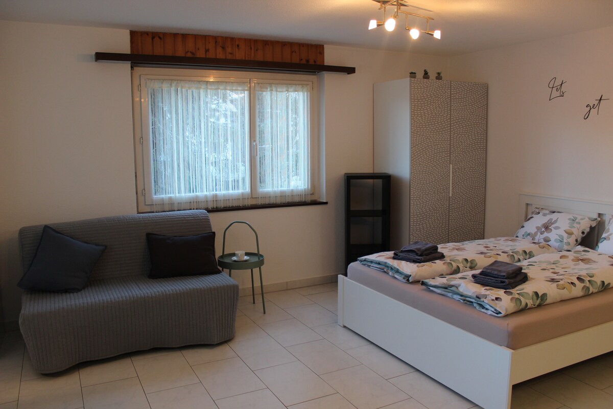Udoban studio u planinama Valais – savršen za ljubitelje prirode, one koji traže mir i aktivne ljude. Smješten direktno na pješačkim stazama, idealan za planinarenje, vožnju biciklom ili jednostavno opuštanje usred prirode. Zimi možete brzo doći do okolnih skijališta. Studio nudi malu kuhinju, kupatilo s tušem i parking mjesto u neposrednoj blizini kuće. Samo 5 minuta pješice do autobuske stanice i Volga (kupovina). Savršena polazna tačka za opuštanje i avanturu u svim godišnjim dobima.