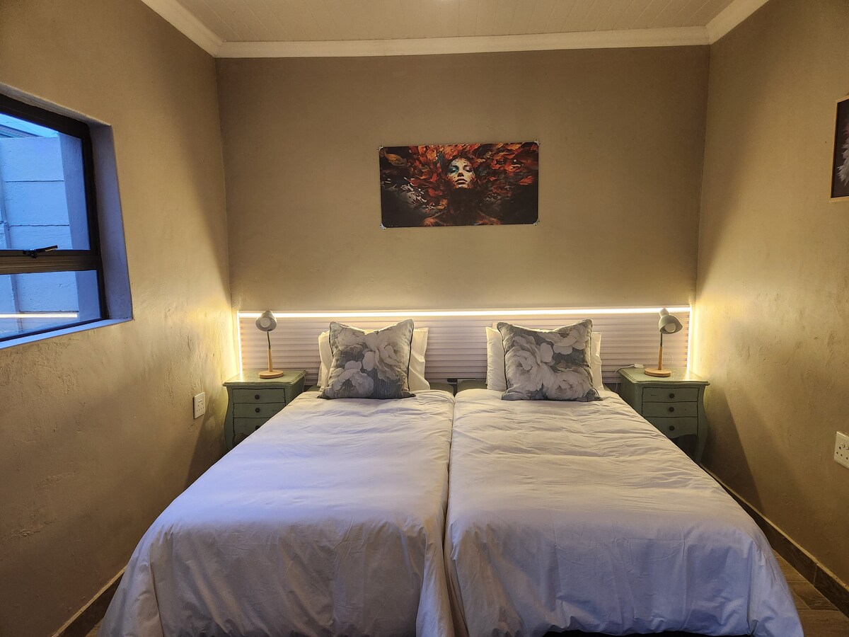 Potpuno opremljen vrtni stan koji se nalazi u moot području Pretorije. Wi-Fi, Open View TV, klima uređaj, vanjski lapa, bazen, kućna teretana i prekrasan vrt. Udaljenost od bolnice Eugene Marais, franšize brze hrane i supermarketa u blizini. Ispod natkrivenog parkinga za jedno vozilo, ova jedinica je također prikladna za kućne ljubimce, ograničena na 2 socijalizovana psa. Sedmično čišćenje obavljeno za sve produžene rezervacije. Bazen i trampolin se koriste na vlastitu odgovornost. Bazen će biti pokriven tokom zime.