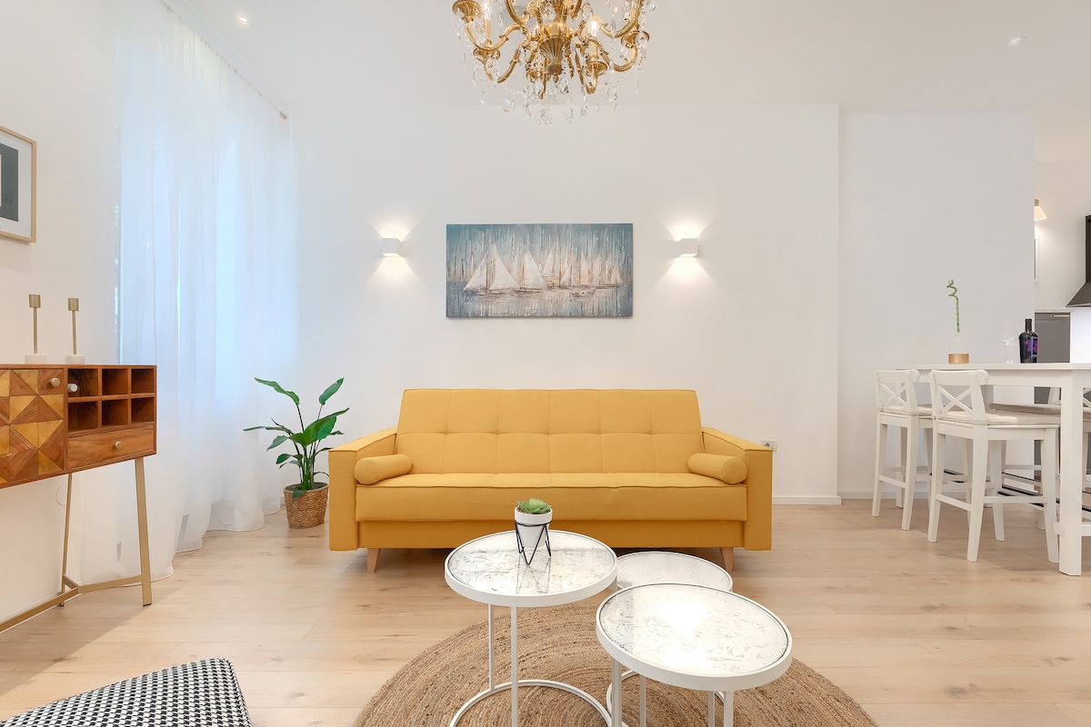 This modern apartment includes a full (eat-in) kitchen, a combined bedroom and living area with a comfortable pull-out couch, and a recently updated bathroom. Apartment is located on the first floor and situated in the historical city center. It's ideal for couples especially if they are arriving by bus because it is one minute walk from the central bus station. Apartment is very well equipped. Dishwasher and washer-dryer are located in the kitchen and TV in the air conditioned living room.