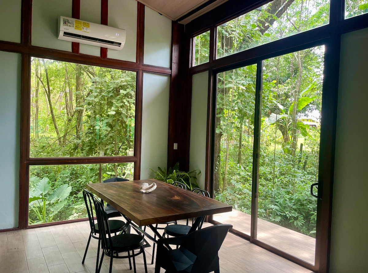 Usporite u Feeling Trees Jungle Lodgeu 🍃 Utočište u džungli okruženo prirodom, tišinom i tropskim vrtovima. Ova privatna brvnara, „Casa Caracoles🐚”, dio je malog smještaja u ekološkom stilu dizajniranog za udobnost i jednostavnost, sa zelenim površinama i bazenom u džungli. Čist, udoban i pažljivo dizajniran, idealno je mjesto za opuštanje, fokusiranje ili rad na daljinu, samo nekoliko minuta hoda od okeana. Savršeno za parove, digitalne nomade i ljubitelje prirode koji traže mir u Kostariki.