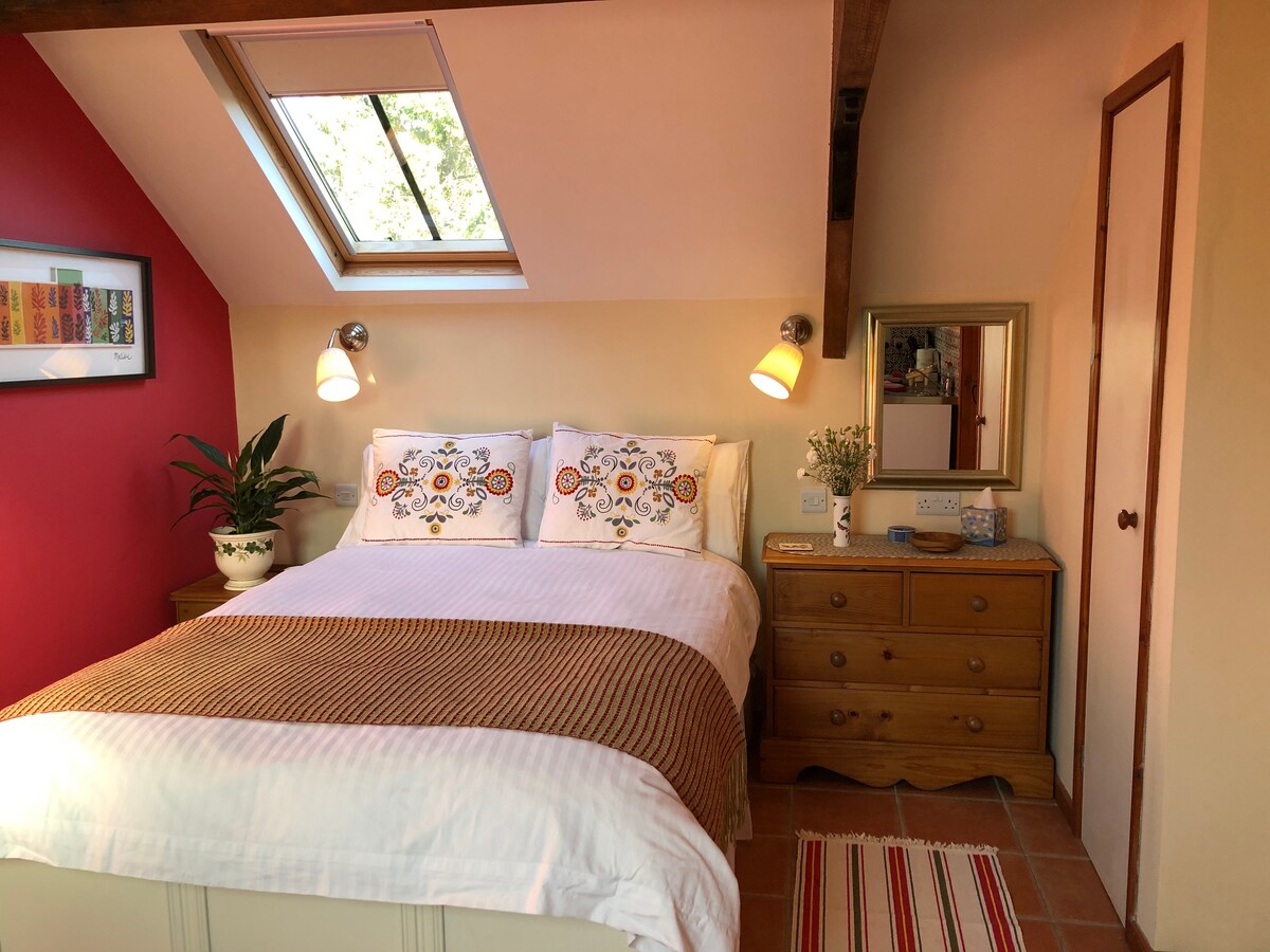 Prostran namješten stan na prvom spratu (izvan stepenica, prilično strm) iznad naših garaža u prelijepom i tihom ruralnom području, dobro za istraživanje. Odijelo par ili par s jednim djetetom. Bračni krevet, krevet za jednu osobu, čajna kuhinja i zasebna tuš-kada/WC. Parking van puta. Dodatni troškovi se naplaćuju za više od dvije osobe i za kućne ljubimce. Odvojena (50 m) od glavne kuće i stoga nudi odličnu privatnost. Neki pristup vrtu.