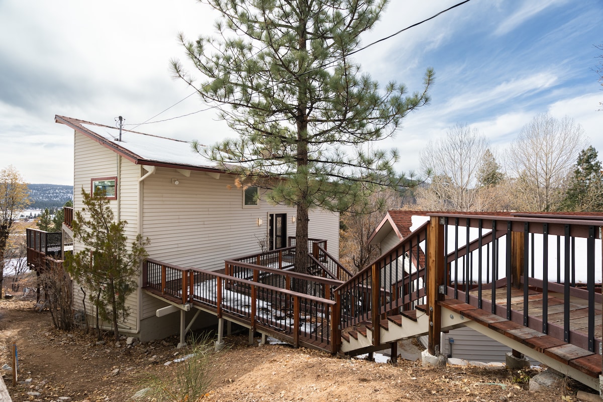 Experience a winter escape at Alpine Vista, an A frame chalet with two king suites, six beds, 2 Gb fiber WiFi, and newly remodeled floors. Enjoy snow covered pines framed through floor to ceiling windows, relax by the cozy gas fireplace, and take in the quiet winter forest. Perfect for families, romantic getaways, and remote work retreats seeking a peaceful mountain escape. Minutes from Snow Valley, SkyPark at Santa’s Village, and snow tubing, with sledding only steps from the chalet.