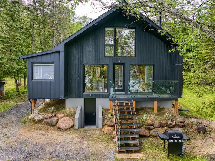 Šarmantan i udoban smještaj uz jezero na prekrasnom jezeru Lac Chapleau. Više od 350 stopa privatne obale. Prostrani trijem s mrežom, velika terasa - privatni dok - pješčani priključak za pristup vodi i roštilj. 2 spavaće sobe: 2 bračna kreveta (širine 150-179 cm) i bračni krevet (širine 150-179 cm). Zatvoreni prostori: Potpuno modernizovano kupatilo od 4 komada s grijanim podovima; udoban kamin na drva. Wi-Fi+TV. Blizu supermarketa, pješačenja, biciklizma, skijanja. Samo 40 minuta do Tremblant Villagea. *Sauna nije u funkciji, a drva za ogrjev nisu obezbijeđena.