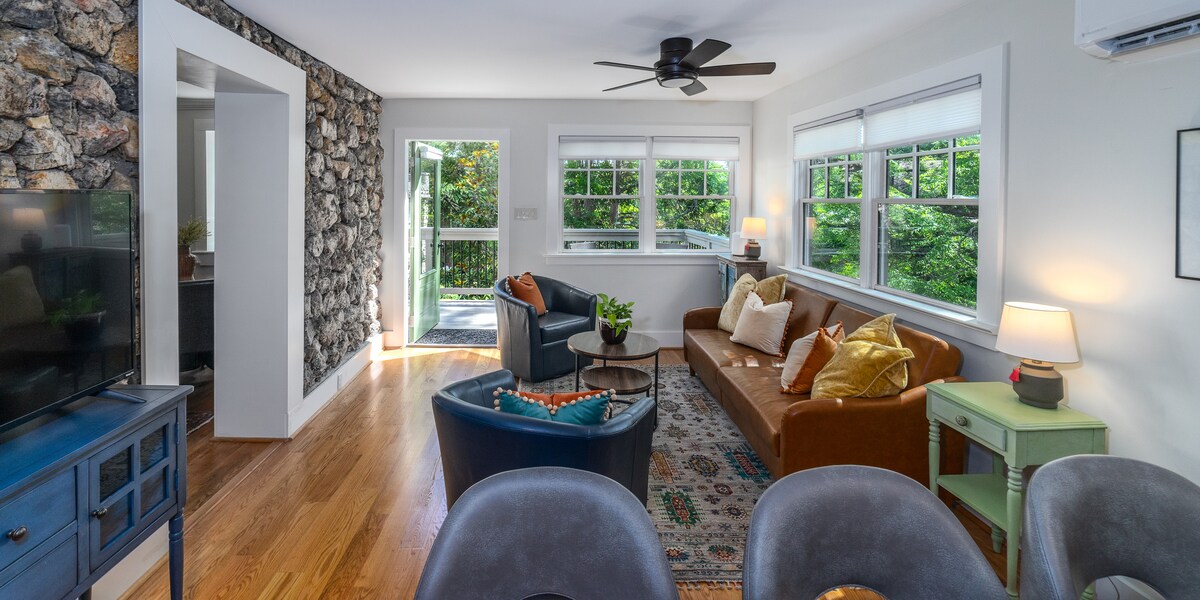 Ovaj elegantni stan u centru grada kombinuje historijski šarm s modernom udobnošću, s izloženom ciglom iz 1920-ih kao Lexington Motor Company. Veliki prozori osvjetljavaju prostor i uokviruju pogled na centar grada i planine Blue Ridge. S dvije bračne sobe, 2 kupatila, kompletnom kuhinjom i 1 privatnim parking mjestom, dizajniran je za udobnost i praktičnost. Pristup liftu čini ga idealnim za goste koji imaju potrebe za prilagođenim pristupom. Rado dočekujemo vaše četveronožne prijatelje uz naknadu za kućnog ljubimca!