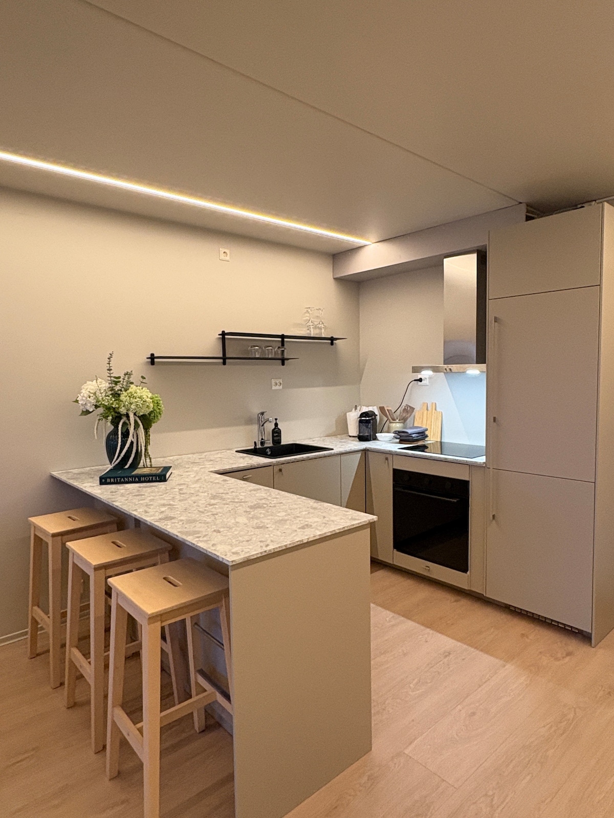 Dobro došli u nedavno renovirani stan od 104 m², smješten u ugodnom području Møllenberga, samo 2 minute hoda od trgovačkog centra Solsiden, aerodromskog autobusa i javnog prevoza. Stan kombinuje moderna rješenja s klasičnim detaljima kao što su štukatura i visoki stropovi. Ovdje živite u centru, ali zaštićeni od gradske buke. Stan je pogodan za privatne boravke, poslovna putovanja i duže posjete. Otvoreno rješenje između dnevnog boravka i kuhinje čini ga pogodnim za kuhanje i druženja.