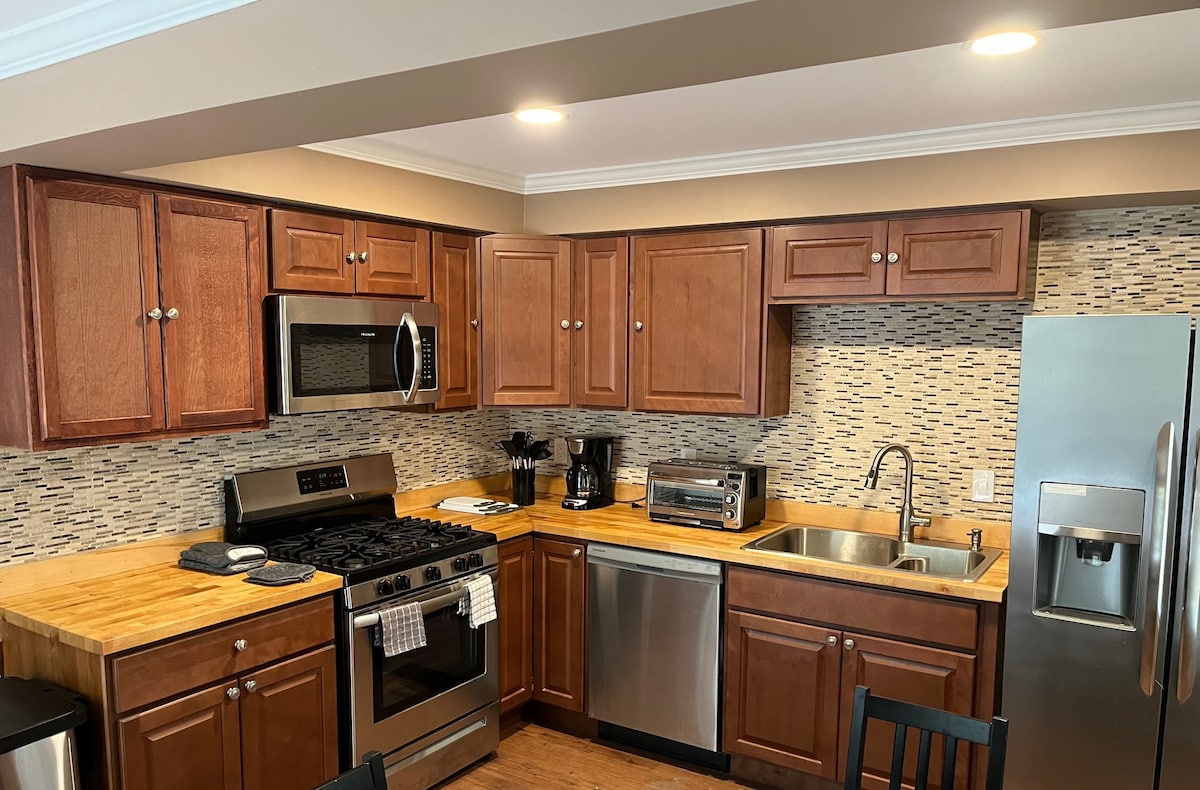 Opustite se sa svojom porodicom u ovom mirnom smještaju. To je prekrasan porodični ranč s posljednjim spratom koji je u potpunosti privatan za goste. Zasebna glavna spavaća soba se može pohvaliti kadom za kupanje i tuš kabinom. Smješten 5 minuta vožnje od Palisades Centra, 5 minuta vožnje od državnog parka Rockland Lake i 10 minuta vožnje od užurbanog centra Nyacka, pronaći ćete nešto u čemu će svi u porodici moći uživati. Ili uživajte na terasi, roštilju i bazenu kod kuće.