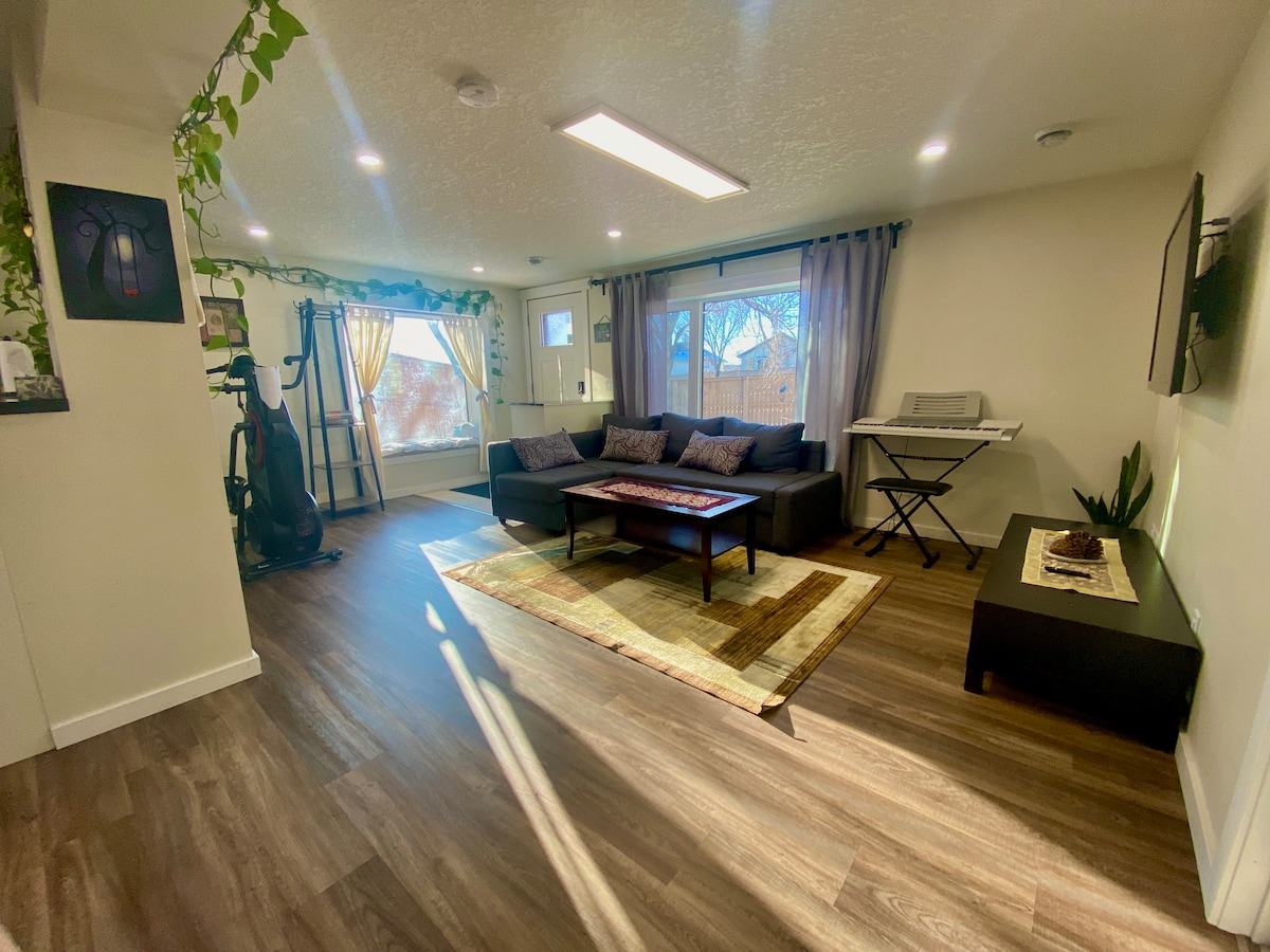 🏆 Best Luxury Basement Suite with a Five-Star Hotel Experience in Calgary 🎬Professional Home Theater-4K 150 inch Screen HDR, DolbyAtmos, IMAX Enhanced Netflix, Disney, Prime, IPTV, Youtube 🗣️SMART HOME Control everything with your voice or iPad 🍷Bar 🍳Full Kitchen 🎮PS5 🚀Fast Wifi 🚗Free Parking 📲SMART LOCK Self Check-in Anytime Self Check-out 📍 Nearby Distances 4 minutes to CTrain Station 7 minutes to Airport YYC 12 minutes to CrossIron Mall 20 minutes to Downtown 90 minutes to Banff