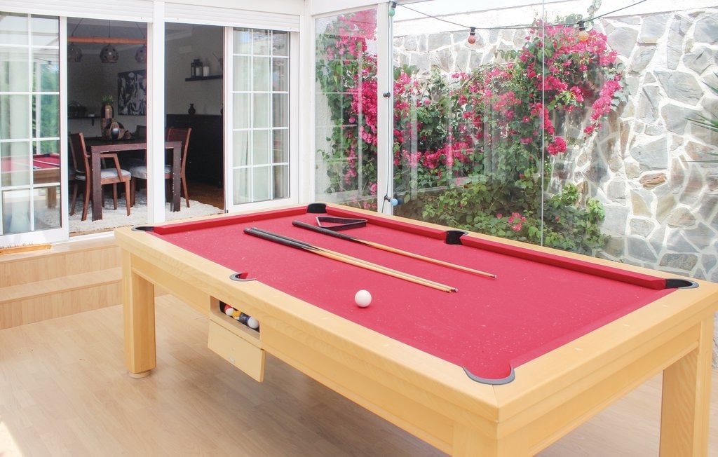 Chalet amplio bien situado, totalmente equipado, donde pasar unos días tranquilos y divertidos. Con todas las comodidades necesarias: Gran cenador con barbacoa junto a la piscina, chimenea de leña, horno, caseta de juegos para niños, jardín y terraza muy espaciosa... TODO EL CHALET Y LA ZONA EXTERIOR, ES COMPLETAMENTE PRIVADO PARA UNA RESERVA, zona de juegos cubierta, ping pong, futbolín, minibillar, PISCINA COMPLETAMENTE VALLADA, wifi, aire en cada habitación.