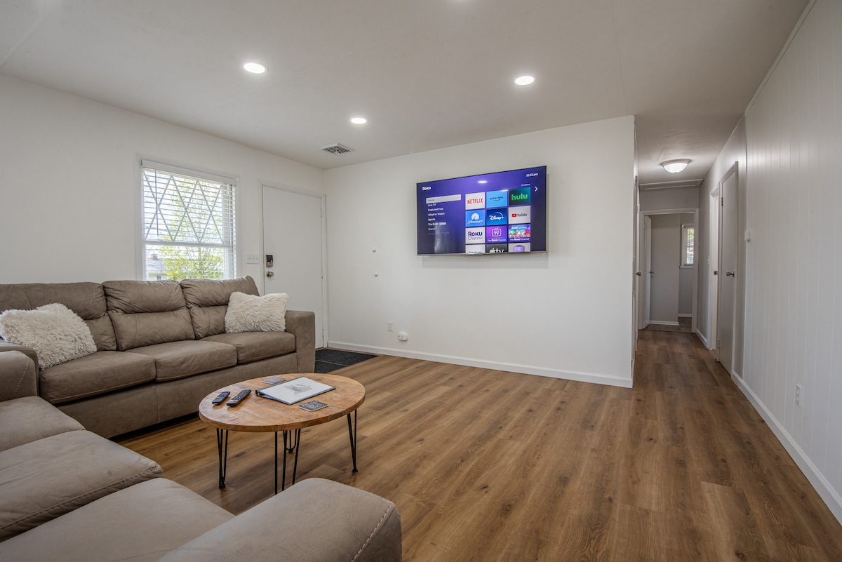 Odlično ćete se provesti u ovom udobnom smještaju. Dvije spavaće sobe, svaka s bračnim krevetom (širine 125–149 cm). Ako morate raditi, postoji dodatna soba s uredskim prostorom. Dnevni boravak i svaka spavaća soba imaju pametni TV. Mirno susjedstvo s privatnim prilazom. Oglasio sam 6 gostiju u slučaju da djeca borave (postoje samo dva kreveta). NY REG # STR-00017