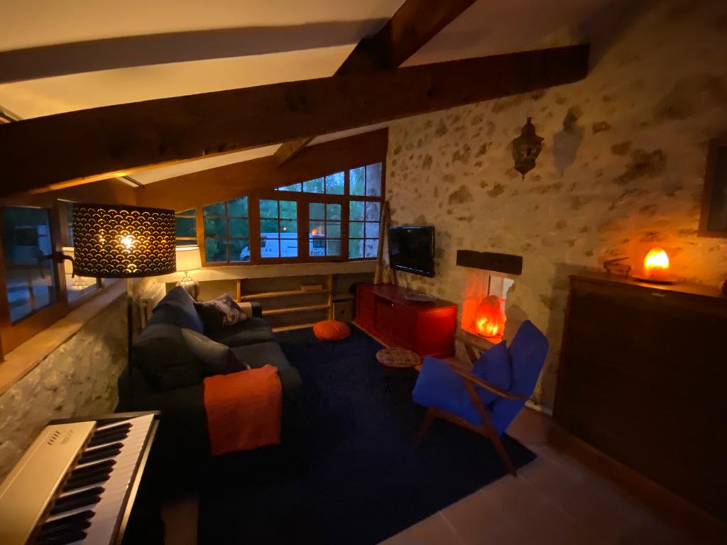Velika restaurirana kuća. 160m². 4 prostrane spavaće sobe .3 kreveta za 2 osobe. 2 kreveta za 1 osobu. dječji krevet. 2 kupatila. 1 kupatilo. 1 tuš. 1 WC. Potpuno opremljena zasebna kuhinja. 1 veliki dnevni boravak. Mezzanine s prostorom za igre, bibliotekom i 1 spavaćom sobom. Podno grijanje. Izloženost jugu. Terasa. Vrtni namještaj. Idealno za porodice ili romantične boravke za parove ili posjete boravcima. Sadržaji za bebe, igre za malu djecu, knjige