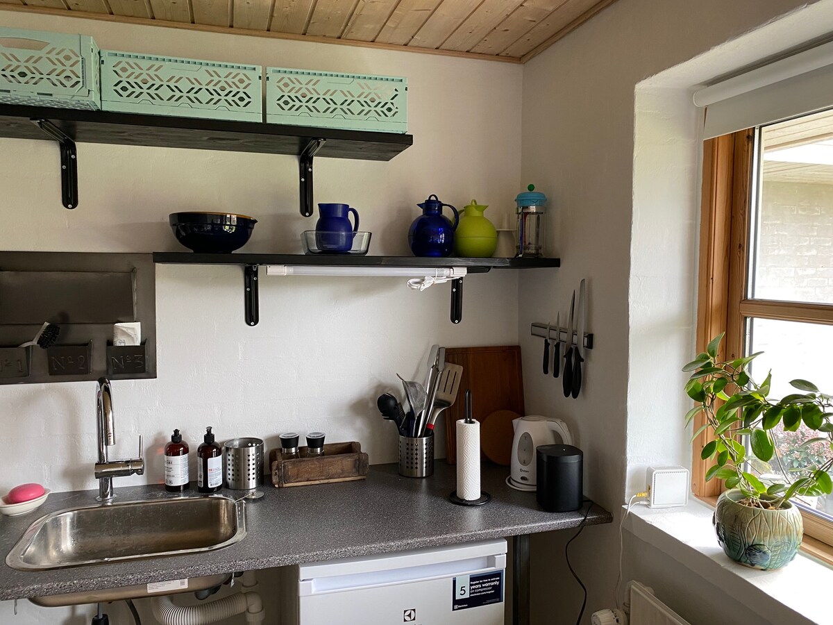 Kjeldsova kuća je mali nedavno renovirani odmaralište s kuhinjom za objedovanje, peći na drva, dnevnim boravkom i nišom s bračnim krevetom. Moderna WC školjka, vanjsko kupatilo, soba s krevetima na kat s 2 kreveta imaju odvojene ulaze. Na raspolaganju su besplatni bicikli, a velika terasa s lijepim zaklonom povezuje sve zgrade. Na rubu čistine na velikoj šumskoj i divljoj parceli nalazi se mala logorska vatra. Ovdje možete uživati u zalasku sunca i uz malo sreće vidjeti jelene i ptice grabljivice.