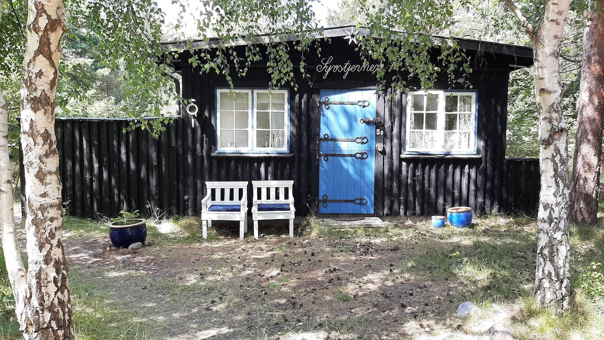 Mala drvena seoska kućica koja se nalazi u velikom parku i bujnom vrtu, privatna i odvojena od glavne kuće, samo nekoliko minuta do velike šume, lijepih plaža i šarmantnog grada s trgovinama, kafićima i restoranima i u blizini voza. Ima jednu glavnu sobu s dva kreveta, zasebnu kuhinju za jednostavno kuhanje i kupatilo. Terasa ima krov i okružena je cvijećem, drvećem i grmljem. Prikladno za romantični odmor.